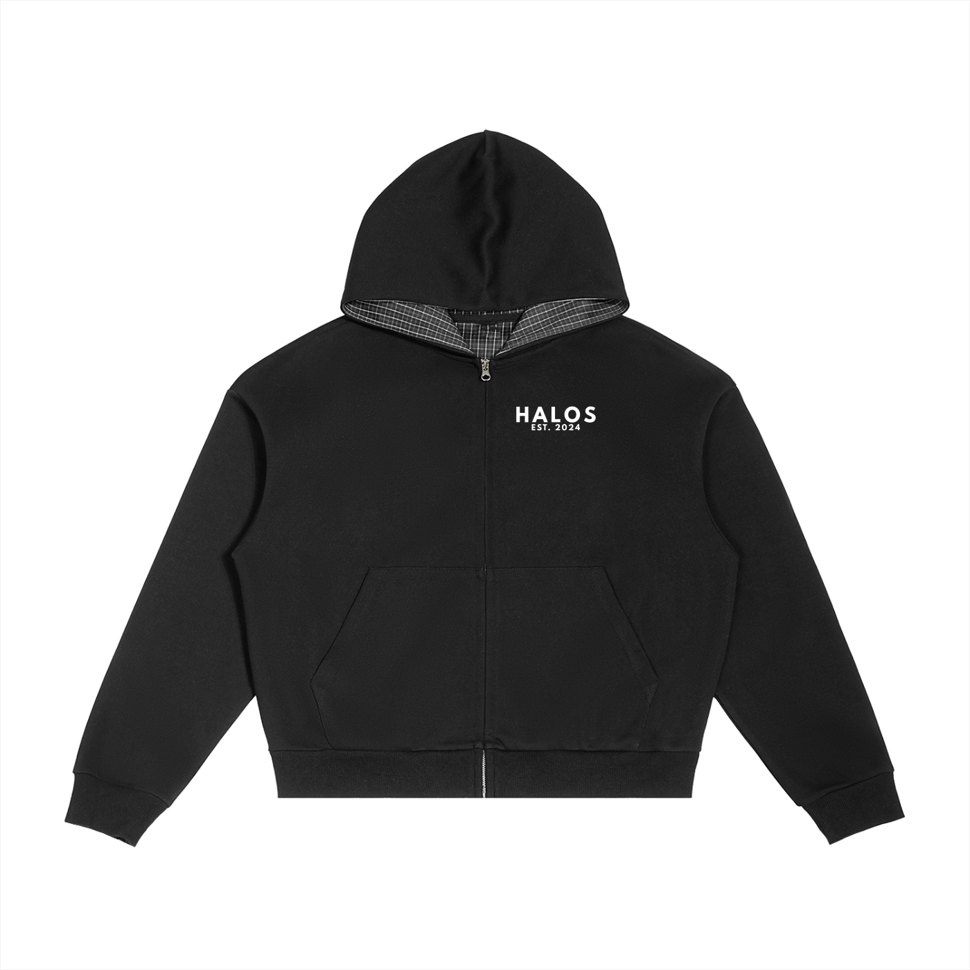 Plaid Zip up and Plaid barrel pants Cozy Club Black